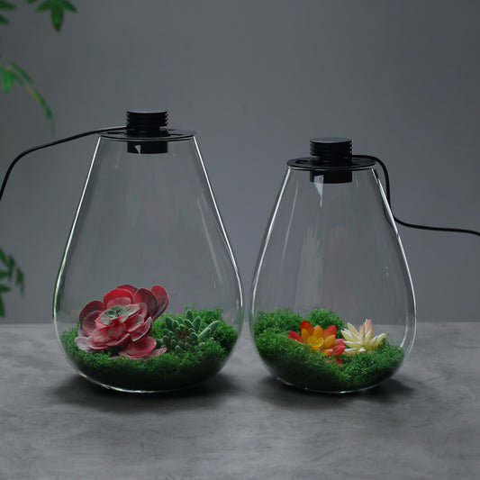 DPROOTS Garden Teardrop Bottle Micro Landscape Ecological Desktop Plant Terrarium with Grow Light